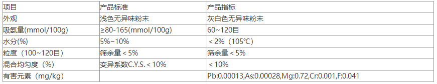 主要特性指標:銨交換容量為109-150毫克當量/克